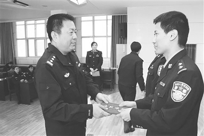 2017年12月26日,衡水市公安局桃城分局举办了党的十九大理论知识竞赛,班子成员、各科室所队副职以上干部及民警代表共计130余人参加。竞赛内容以党的十九大报告、新修订的《中国共产党党章》、十八届中央纪律检查委员会工作报告为主,分为必答、抢答、演讲三个环节进行。全局6个代表队18名民警参加了比赛。此次竞赛进一步强化了广大民警不忘初心、牢记使命,开启新时代新征程的思想自觉、政治自觉和行动自觉。图为局领导为获奖民警颁奖。