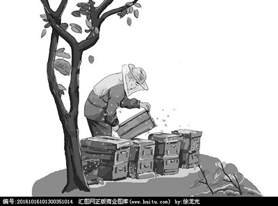 四叔告诉我,养蜂还得保护蜜蜂,防止敌虫的侵害。记得有一天早晨,四叔去看蜂箱,刚走到蜂箱前,就发现蜂箱前的地上有许多死去的蜜蜂,四叔打开蜂箱一看,原来有一只大黄蜂在箱子的进出口咬死了许多蜜蜂后又钻进蜂箱里和蜜蜂撕咬起来,四叔用刮刀将大黄蜂打死,为了除掉隐患,四叔把我叫来,在附近的房屋、树林、草垛等处寻找大黄蜂的蜂窝,找了半晌,在村外不远处的一棵大榆树上发现了一个筑巢不久的黄蜂窝巢,我正要去捅,四叔制止了我,说晚上用一麻袋将蜂巢套住,只有这样才能将这窝的黄蜂全部灭掉。晚上,我和四叔用此法除掉了这个黄蜂窝点。
