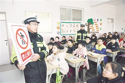3月5日是石家庄市小学开学第一天,新乐市交警大队开展了“交通安全知识进校园”活动。民警在这一天走进学校,向学生们普及道路交通安全常识,进一步增强他们的安全出行意识。图为民警为西长寿小学的学生讲解交通安全知识。
