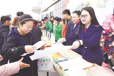 图为3月15日,在新乐市30多个单位共同举办的“3·15”消费维权主题宣传活动上,工作人员向市民发放宣传资料。 贾敏杰 摄