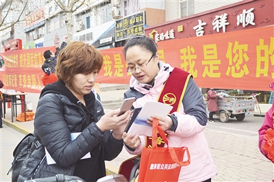 为进一步增强消费者的法治观念,提高消费者的维权意识,3月15日,石家庄市鹿泉区司法局组织公证员、律师、普法志愿者开展了公证顾问、律师顾问“两个顾问”宣传活动。活动通过设立咨询台、悬挂条幅、发放法律宣传资料、免费法律咨询等方式,进一步增强了群众自我保护意识与维权意识。图为宣传活动现场。 张丽 摄