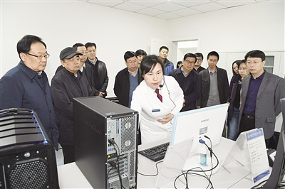 图为王昌一行在史建明等陪同下实地察看省检察院司法鉴定中心工作。 谷晓哲 摄