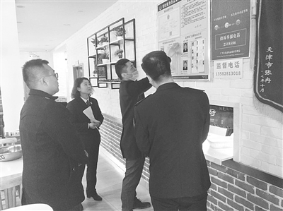 图为广平县检察院干警联合县食品药品监管部门工作人员在对经营网络餐饮服务的实体店进行实地排查。 胡慧楠 摄