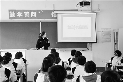 3月26日,第23个“全国中小学生安全教育日”。廊坊市交警二大队组织宣传民警走进辖区王庄小学教室,讲解骑车、走路等交通安全常识,给小学生们上了一堂精彩的交通安全课。大队辖区其他中小学校,也分别按照要求开展了特色交通安全宣传活动。图为交警正在给学生上课。 刘颖 王志强 摄