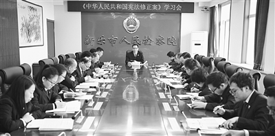 日前,新乐市人民检察院组织全体干警学习了《中华人民共和国宪法修正案》。该院党组书记、检察长王玉录表示,学习贯彻宪法修正案是当前和今后一个时期的重要政治任务,检察机关作为国家的法律监督机关,要学习好、贯彻好宪法修正案,坚决做宪法的忠实崇尚者、自觉遵守者、坚定捍卫者,切实担负起维护宪法权威、捍卫宪法尊严、保证宪法实施的神圣职责。