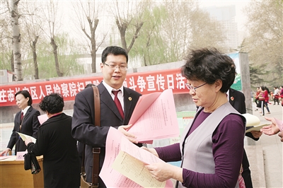 图为省检察院督导组成员在石家庄市长安区检察院设立的宣传站点,一同向过往群众宣传扫黑除恶专项斗争。