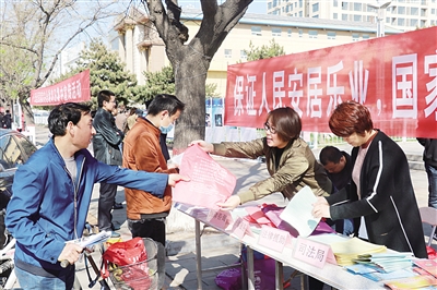 4月15日上午,在涿州市委的统一组织下,涿州市司法局联合市法院、检察院、公安局在文化广场开展了全民国家安全教育日集中宣传暨专题展览活动。活动中,各部门结合自身实际,重点围绕《国家安全法》《网络安全法》等法律法规,以设置宣传展板、悬挂标语、发放法治宣传资料、开展法律咨询等形式,开展了丰富多彩的宣传活动。此次活动,工作人员共发放法治宣传资料6000余份,为群众提供法律咨询20余人次。图为全民国家安全教育日集中宣传活动现场。 金娟 张熙泽 摄