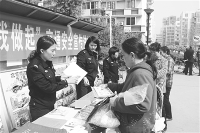 日前,平山县交警大队宣传民警走进敬业花园社区,开展“遵守交规,从我做起”交通安全宣传活动。民警向广大居民发放宣传资料、讲解交通安全常识,提高了居民交通安全意识,受到大家欢迎。 张利建 摄