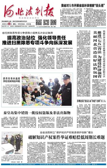 《河北法治报》(电子版)的一切内容(包括但不限于文字、图片、PDF、图表、标志、标识、商标、版面设计、专栏目录与名称、内容分类标准以及为读者提供的任何信息)仅供河北法治报、网读者阅读、学习研究使用,未经河北法治网及/或相关权利人书面授权,任何单位及个人不得将《河北法治报》(电子版)所登载、发布的内容用于商业性目的,包括但不限于转载、复制、发行、制作光盘、数据库、触摸展示等行为方式,或将之在非本站所属的服务器上作镜像。否则,河北法治网将采取包括但不限于网上公示、向有关部门举报、诉讼等一切合法手段,追究侵权者的法律责任。