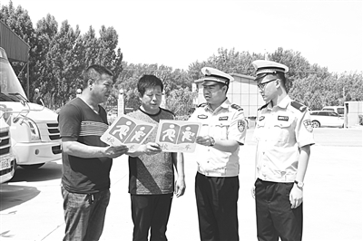 经过资格审核、校车安全技术检验、行驶路线审查等一系列工作,经文安县政府和廊坊市交警支队审批后,文安县首批14辆校车拥有了合法“身份”。5月24日,该县交警大队为符合条件的14辆校车发放了校车标牌。据了解,此次发放的校车标牌上清楚地载明了车辆的号牌号码、车辆所有人、驾驶人、行驶线路、行驶时间、停靠站点以及校车标牌发牌单位、有效期等。图为民警向车主发放校车标牌。 本报记者 田宪忠 摄