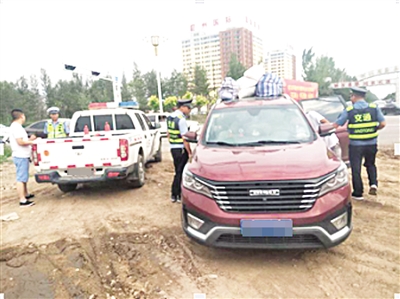 图为蔚县运输管理所执法人员正在认真检查过往车辆。 文/图 张峻峰 崔莹
