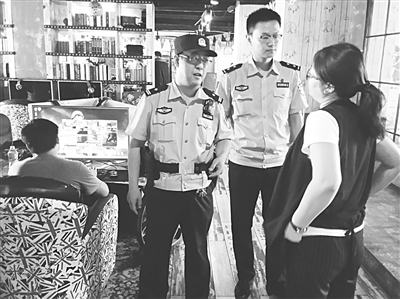 为预防夏季火灾的发生,石家庄市桥西公安分局彭后街派出所积极组织民警开展消防安全执法检查。图为7月9日,民警在辖区一家网吧检查时,提醒店主不得让上网人员在网吧吸烟,不听劝阻者将受到治安处罚,若不劝阻,经营者将受到相应处罚。 本报记者 牛鸿飞 摄