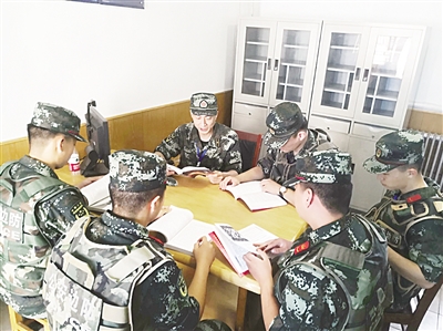 连日来,秦皇岛边防支队中华荷园边防派出所利用勤务间隙,积极开展“读书进一线,读书下基层”活动,组织执勤官兵深入学习中国共产党的成长历程,在多读书、读好书的过程中不断增强官兵的荣誉感、责任感、使命感。图为7月15日,该所华侨城警务点官兵读书学习的场景。