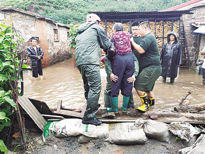 7月24日15时10分,滦平消防中队接到报警称:滦平县张百湾镇张百湾村发生水灾。接到报警后,滦平中队立即出动1辆水罐消防车、7名指战员赶赴现场进行救援。 受强降雨影响,该村部分民房由于地处低洼处,内部有大量积水无法排出,而暴雨一直未停,水位越来越高,且这些房屋均为上世纪七十年代建造,极易发生倒塌,严重危及群众生命和财产安全。消防官兵立即挨家挨户帮助村民转移疏散。经过半个多小时的救援,24名被困村民全部被转移到安全地带。 图为救援现场。