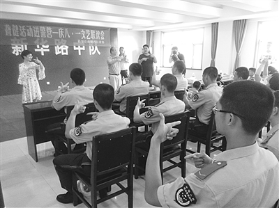 为庆祝“八一”建军节,增进军民深厚情谊,7月28日下午,石家庄市桥西区残联聋人协会组织聋人朋友们来到石家庄市公安消防支队新华路中队,为官兵们送上一场精心准备的慰问演出。演出结束后,消防官兵带领聋人朋友参观了消防中队,并展示了两个消防业务训练科目。图为消防官兵和聋人学习简单手语。