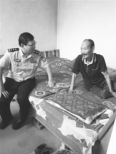 日前,灵寿县公安局一行15人来到扶贫联系点——灵寿县司家庄村开展扶贫帮困。民警们分成三个小分队对该村的22户贫困户进行了入户走访,送上食品和生活用品,并逐户发放帮扶连心卡、帮扶公开信,张贴结对帮扶公示牌。图为该局局长王峰到老党员司马增家进行帮扶慰问。 本报记者 张哲 摄