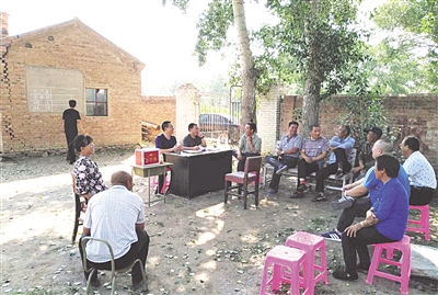 康保县人民法院在村“两委”换届选举工作中主动介入,积极提供法律指导,特别是对村“两委”参选候选人进行“失信审查”,助力村“两委”换届选举,为村“两委”换届选举营造良好的法治氛围。图为8月10日,康保县法院脱贫攻坚驻村工作组参与驻村“两委”换届选举工作。 本报记者 梁燕 摄