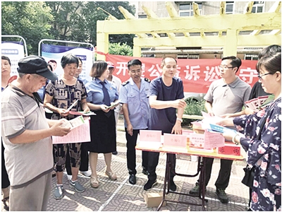 近日,邯郸市邯山区人民检察院民行部按照市院《邯郸市检察机关食品药品安全领域检察公益诉讼专项活动实施方案》要求,联合辖区市场监督管理局进入社区开展专项宣传活动,守护老百姓“舌尖上的安全”。图为该院工作人员与市场监督管理局工作人员一起在现场进行宣传。 王伟洁 摄