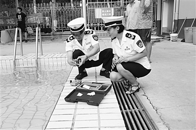 近日,保定市卫生监督局在全市组织开展游泳场所卫生专项监督检查,重点检查游泳场所的池水循环净化设施、池水消毒设施及池水卫生质量监督抽检及公示情况等。检查中,执法人员对泳池池水、浸脚池的余氯等指标做了现场快速检测。对池水抽检不合格单位将重新采样复检,仍不合格的将依法查处。 陈立元 摄