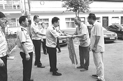 8月13日下午,花某将一面绣有“警民深情似鱼水 尽心尽责见真情”的锦旗送到曲周县交警大队大队长李鹏手中,并送上一封感谢信,对民警快速出警、秉公执法、尽职尽责表示感谢。前不久,花某的亲属在驾电动三轮车行驶中发生了严重交通事故,交警大队接到警情后迅速出警,民警对事故现场仔细勘查,连夜调取视频,提取相关证据,经过20多天的不懈努力,终于侦破了交通肇事案。 王晓刚 摄