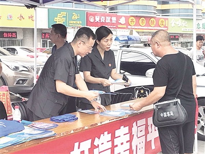 为加大扫黑除恶专项斗争宣传的深度、广度,切实营造浓厚的社会氛围,日前,保定市莲池区人民法院组织干警在亨百利小商品批发城门前广场开展扫黑除恶专项斗争宣传活动。干警们通过案例讲解、向过往群众发放宣传单等方式,面对面向群众宣传扫黑除恶相关知识,鼓励引导群众踊跃举报黑恶势力违法犯罪线索,以此推动扫黑除恶专项斗争向纵深发展。 廉轩 摄