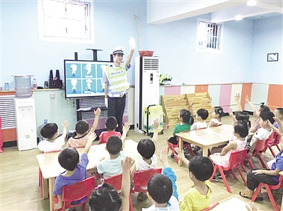 8月 16 日, 元氏县交警大队宣传科民警冒雨深入元氏县西原庄村中心幼儿园,进行道路交通安全宣传、发放宣传材料并和小朋友们进行互动;8月20日,灵寿县公安交警大队宣传民警携带交通安全宣传材料走进少林小学,为该校1500余名学生上了一堂生动的交通安全宣传教育课;8月21日,井陉县交警大队、赵县交警大队民警分别走进当地幼儿园开展交通安全宣传;8月22日,平山县交警大队宣传民警深入辖区两河村幼儿园,为孩子和老师们上了一堂交通安全课;同一天,晋州市交警大队也深入到该市马于镇喜洋洋幼儿园进行交通安全宣传,鹿泉区交警大队民警宣讲员走进希望之星幼儿园,以“小手拉大手,文明一起走”为主题,开展“交警进课堂”活动……