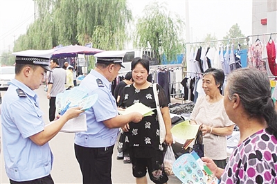 井陉县公安交警向赶集群众发放交通安全宣传资料