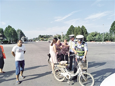 8月21日,魏县交警大队城区中队民警在定魏线与邯大线省道交口处发现一位老人躺在路上,旁边站着一名女孩,来往车辆较多,十分危险。民警迅速上前拦停过往车辆,并将老人搀扶至路边。经询问,原来是女孩骑电动车过路口时打电话分神,将骑车老人撞倒。民警询问老人身体状况,准备开车带老人去医院检查。老人笑着拒绝,表示自己身体没事,并对女孩说:“别怕,俺不讹人,你走吧。”女孩递给老人一张写有电话的纸条:“大娘要有什么事,就给我打电话。”随后,老人自行骑车离去。民警随后对女孩进行了交通安全知识教育。 李小龙 范一杰 摄