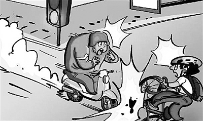 那天上午,当路口的黄灯闪烁时,一个美女骑一辆黑色电动车从斑马线上逆向狂奔而来,如入无人之境。我们见其来势汹汹,慌忙躲过,暂避锋芒。但美女好像意识到逆行很不对,想尽快脱离窘境,车速不减反增,结果迎头与一骑单车的帅男顶撞,连人带车摔倒在地,头部触地,手捂着后脑勺热泪盈眶。帅男人麻利,没摔倒,但是手机却被摔得四分五裂。我们赶忙上前调解,指出美女的违法行为,安抚遭受无妄之灾的帅哥。经过一番说教,二人终于达成和解协议。