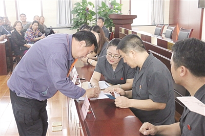 图为职工签字领取工资和补偿金。 杨文志 马月红 摄