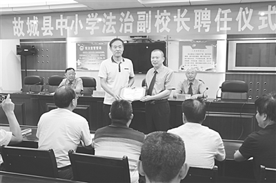 近日,故城县人民检察院检察长朱同辉和班子成员被9所中小学聘任为法治副校长,定期深入学校面对面了解学生思想动态、解答法律问题,从而优化校园法治环境,促进学生健康成长。 王琳 摄