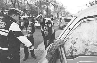 围绕交通秩序集中治理行动,沧州市交警二大队派出专门警力加大交通巡逻管控力度,对随意在道路上乱停乱放,占用盲道,占用消防通道、抢险通道的机动车,及时张贴违法停车告知单,对长期停放的“僵尸车”一律依法拖离, 创造文明有序、安全畅通的道路交通环境。图为10月28日,民警对一辆长期停放的面包车进行处置。