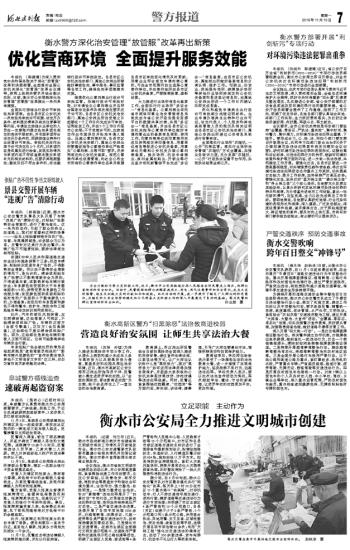 本报讯 (郭建博)为深入贯彻党中央和国务院关于深化“放管服”改革的决策部署,全面落实全国公安机关深化“放管服”改革会议精神,按照上级有关要求并结合衡水实际,日前,衡水市公安局就深化治安管理“放管服”改革推出一系列具体措施。