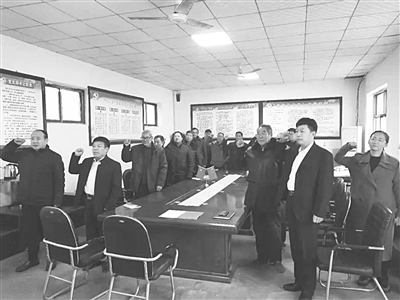 党课开始之前,杨金才带领该院检察干警和全体与会党员一起重温入党誓词。