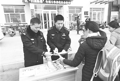为全力做好冬季火灾防控工作,近日,衡水市公安局桃城分局人民路派出所民警走上街头,向群众宣传消防安全知识。活动中,民警现场向群众讲解家庭用火、用电、用气注意事项和安全常识,发生火灾时报警、逃生及初起火灾的扑救知识和技能。此次活动的开展,进一步提升了辖区广大群众的防范意识,为辖区防火安全形势的稳定和今冬明春火灾防控工作的深入开展奠定了良好的基础。图为民警向群众宣传消防安全知识。 孙业超 摄