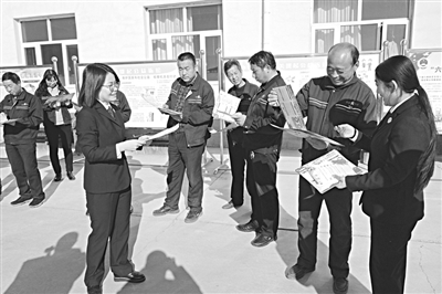 12月3日,赤城县人民检察院干警走进民营企业——张家口弘基牧业开发有限责任公司,就当前影响民营企业发展的相关问题征询公司负责人的意见和建议。赤城检察院负责人表示,检察机关将从打击、保护、预防、监督四个方面,找准服务民营企业的切入点,帮助企业建立起完善的管理制度,提高企业家和员工们的宪法意识和法治素养,通过打击侵犯民营企业和企业家合法权益的犯罪,为民营企业发展营造良好的外部环境。图为检察干警在厂区开展普法宣传活动。 本报记者 梁燕 摄
