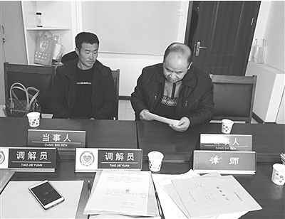 12月11日,秦皇岛市海港区矛盾纠纷排查调解中心与海港区道路交通事故人民调解委员会联合调处了一起铁路撞人致死的补偿纠纷。海港区矛盾纠纷排查调解中心坚持发展“枫桥经验”,推行“1+1>2”的联合调解模式,实现矛盾不上交,服务了群众,稳定了社会。 李可佳 摄