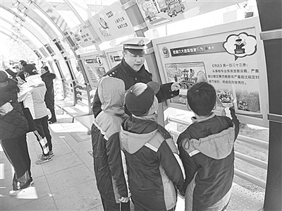 为进一步提高中小学生自觉遵守交通法规意识,1月8日,秦皇岛市公安局交通警察支队二大队组织建设路小学师生,在“交通安全主题公园”开展集参观、宣传、教育、培训于一体的授课活动。民警从小学生的认知特点出发,就交通安全法律法规做了深入浅出的讲解。民警还利用公园内的交通指示标志等设施,组织学生对观察信号灯、安全过街等场景进行了模拟。图为民警向学生们讲解交通法规。 本报记者 刘波 摄