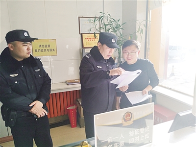 “你好,我们是开发区公安分局民警,现在检查旅馆实名住宿情况。”1月22日,霸州市公安局开发区分局治安科副科长方增海像往常一样带队对辖区行业场所进行随机检查,9时30分,他们来到位于迎宾西道上的一家假日酒店,检查住客登记情况。