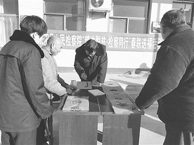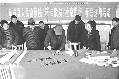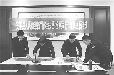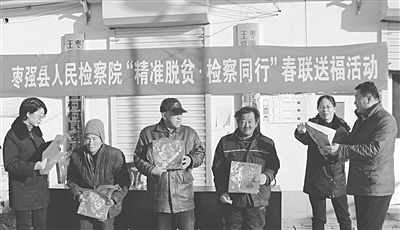 本报讯 (记者 张兰华 通讯员 贾育恒 冯帅)为进一步加大文化扶贫工作力度,活跃全市检察文化氛围,激发帮扶村群众创造美好生活的坚定信心,1月15日,衡水市两级检察院干警分别奔赴各自对口帮扶村开展以“精准脱贫·检察同行”为主题的春联送福活动。