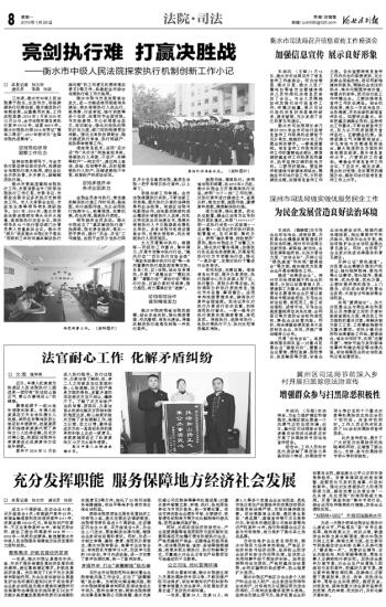 本报讯 (槐静莲)为引导企业依法治企、诚信经营,为民营企业健康发展营造良好的法治环境,深州市司法局立足新形势、新职能、新定位,主动发挥职能优势,从加大普法力度、“法治会诊”、开辟公证“绿色通道”和实现“援调结合”等方面,做实做优为民营企业开展法律服务工作。