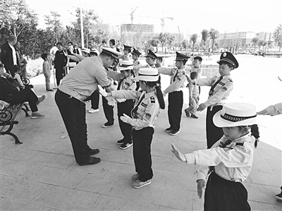5月15日,小警察训练营部分学生代表来到灵寿县交警大队和消防大队,开展安全教育实践活动。小伙伴们认真观看了安全宣传教育片,和交警叔叔学做交通指挥手势,听消防员叔叔介绍消防设备使用和报警知识。一番体验和学习,使孩子们懂得了基础的交通安全常识和日常消防知识,学会了如何报警,增强了遇到险情的自我保护和处置能力。图为活动现场。 本报记者 张哲 摄
