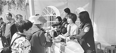 怀来县人民法院旅游法庭主动延伸司法服务触角,倾力服务旅游产业健康发展。图为5月19日上午,法庭干警走进黄龙山庄景区,向游客讲解旅游法庭工作职能、旅游法律常识和依法维权规定,并赠送便民诉讼手册、诉讼服务指南等宣传品。