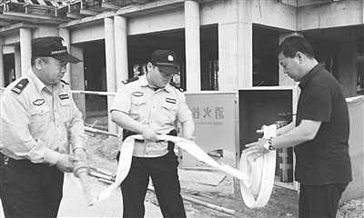 石家庄市鹿泉区公安局石井派出所从抓治安、除村痞、重消防入手,努力营造良好的营商环境,收到明显效果。图为该所民警在辖区学校检查消防设施。