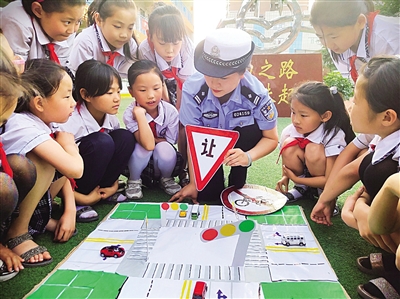 “六一”到来之际,邯郸市滏东交警大队民警走进小学校园,针对夏季学生外出活动较多,重点围绕出行交通安全展开讲解。民警还特别制作了道路岗区模拟设施,现场组织学生们参与体验互动,引导学生们正确认知交通标识及交通设施,教导学生们正确使用道路交通辅助设施,提升学生们的出行交通安全意识。