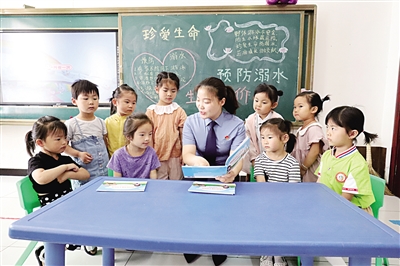5月28日,魏县人民检察院组织女检察官来到该县第二幼儿园,开展了“珍爱生命 从我做起”安全知识教育活动。检察官以通俗易懂的语言,给孩子们讲解如何预防和应对溺水、性侵、伤害等方面的知识,让孩子们健康快乐成长。图为女检察官在给孩子们讲解自我保护知识。