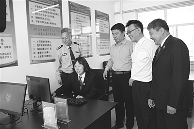 图为在赤城县法院“道交一体化”调解中心揭牌仪式后,工作人员现场演示网络平台操作。