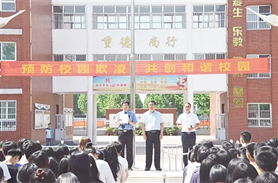 任县人民检察院未检宣讲团成员近日在副检察长兼法治副校长米随章的带领下,到第四中学开展校园安全督查工作,并以“预防校园欺凌,共创和谐校园”为主题进行法治宣讲,加强对青少年学生的法治教育。 李永振 栗群峰 摄影报道