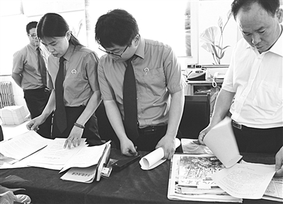 枣强县人民检察院近日联合县教育局进行专项督查,采取随机抽查、听取汇报、组织座谈、实地察看等形式,就辖区中小学、幼儿园开展预防性侵害未成年人和校园安全建设工作进行督导检查,确保高检院“一号检察建议”落地落实,保护未成年人健康成长。图为督查人员在查阅学校有关档案记录。 杜东旭 付洋 摄影报道