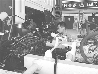 这么热的天,车架号在前轮大梁上,不钻到车底下探身进去,根本看不着;拓发动机号,机身滚烫,手一接触,稍不留神“嗞——”就会烫掉一层皮。三四米高的大车,查验制动系统,蹲地沟……大伙晒得黢黑,每辆车查验、登记、挂牌下来,少则四五十分钟,每天加班加点,顶多也就能完成七八辆。还有其他群众的车辆注册也不能耽误,照这个进度,根本不可能干完。按照惯例,车管部门周六、周日一律休息,由于系统跟公安部联网,如需加班,必须逐级上报开通。从5月份至今,大货车注册登记工作站没有节假日,没有星期天,“所长孙磊干在前,吃苦在前,那是应该的;两名辅警也都瘦了十几斤。”魏长路说,“值得欣慰的是,照目前的进展情况,厂家的大车销售注册应该可以如期完成。”